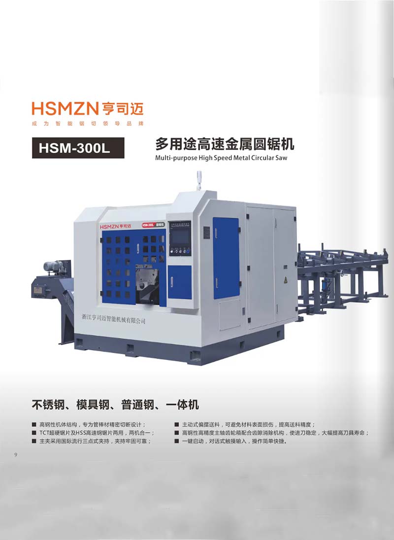 浙江亨司迈智能机械有限公司总公司,(前身浙江顶峰机械有限公司)1990年成立于“中国机床之都”—壶镇镇,占地面积30000多平方米,资产总值达上亿元,设计生产销售团队600余人,三十多年来一直致力于智能化设计研发、生产制造、销售服务为一体的以金属带锯床,高速圆锯机生产为主的综合型制造企业。公司始终把“成为智能锯切的引领者”作为企业产品发展的首位,并以此来宏扬中国制造业文化,推动企业的品牌化建设。